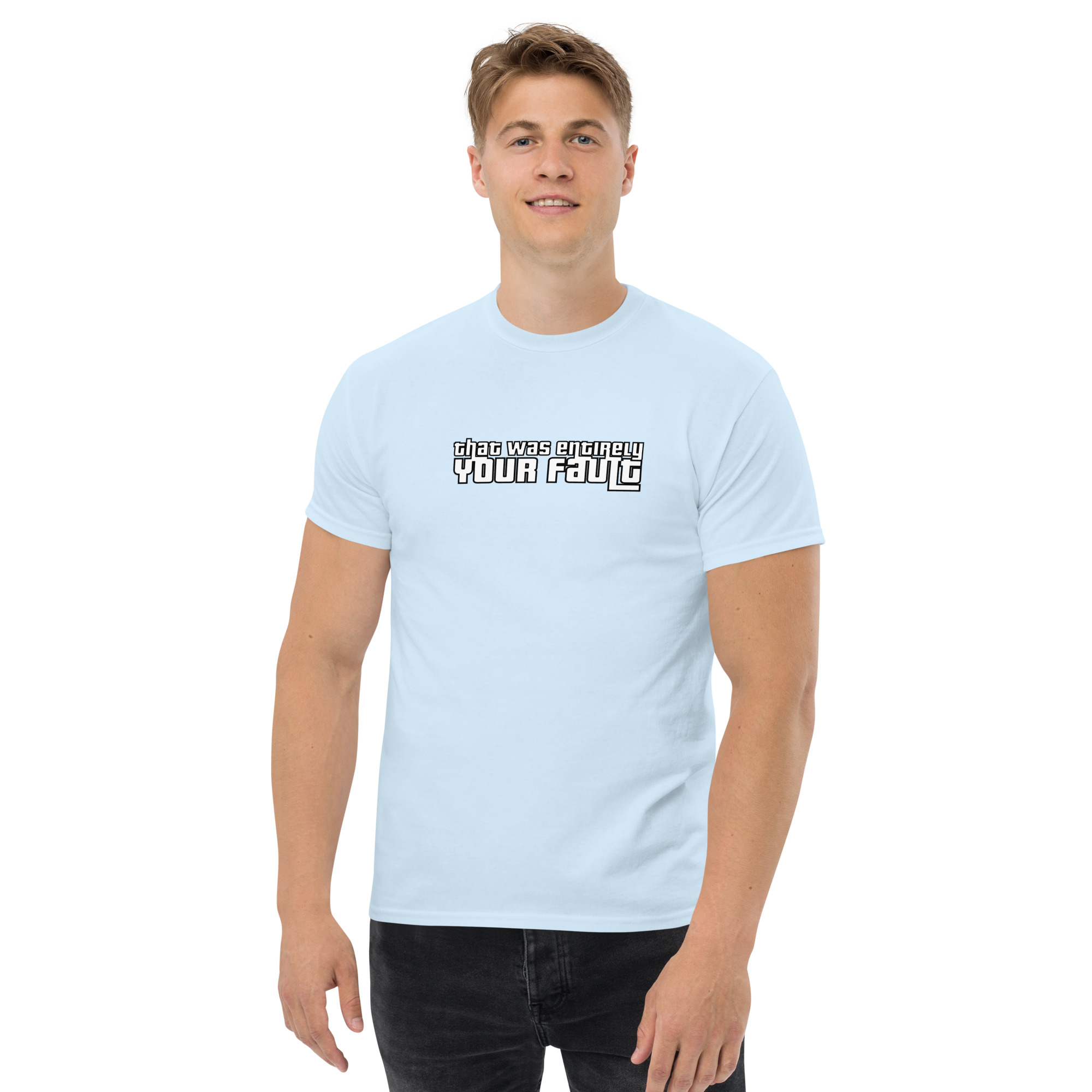 The 100% cotton men’s classic tee will help you land a more structured look. It sits nicely, maintains sharp lines around the edges, and goes perfectly with layered streetwear outfits. Plus, it’s extra trendy now!